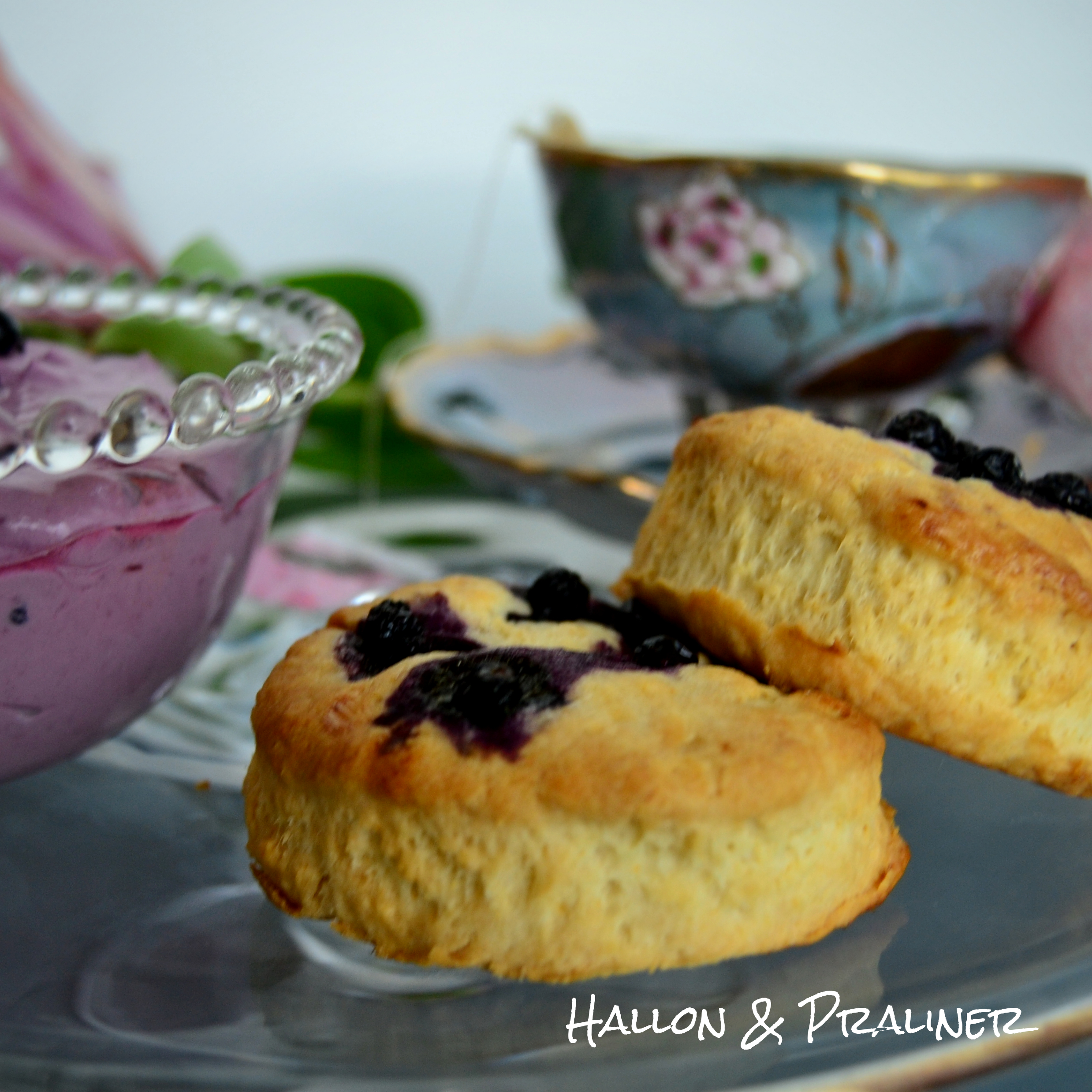 Engelska scones som serveras varma är ett måste för oss vid afternoon tea. Denna gång valde vi att servera dom med en kräm gjord på mascarpone och blåbär.