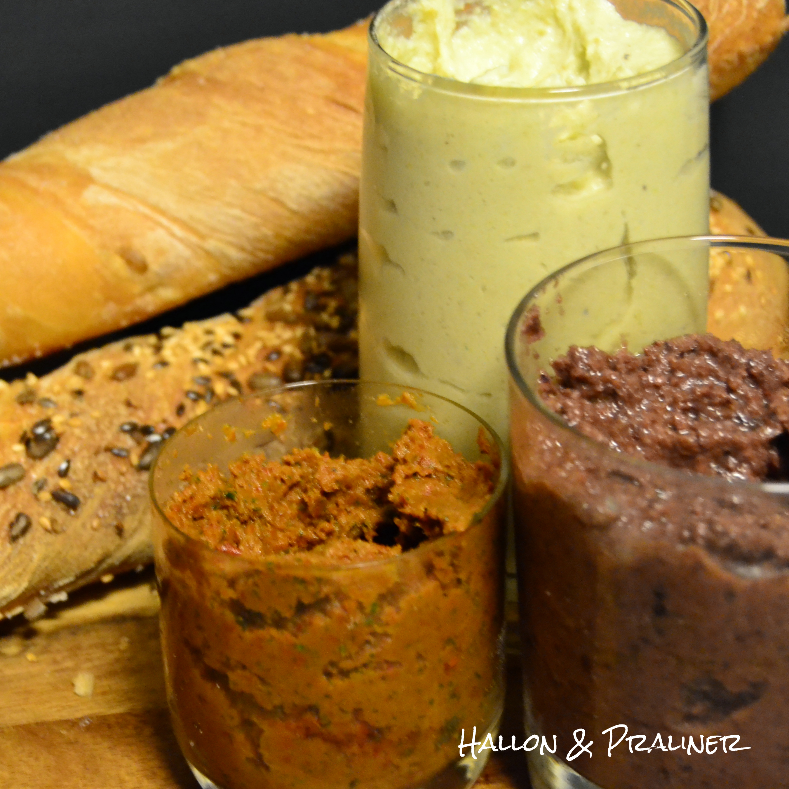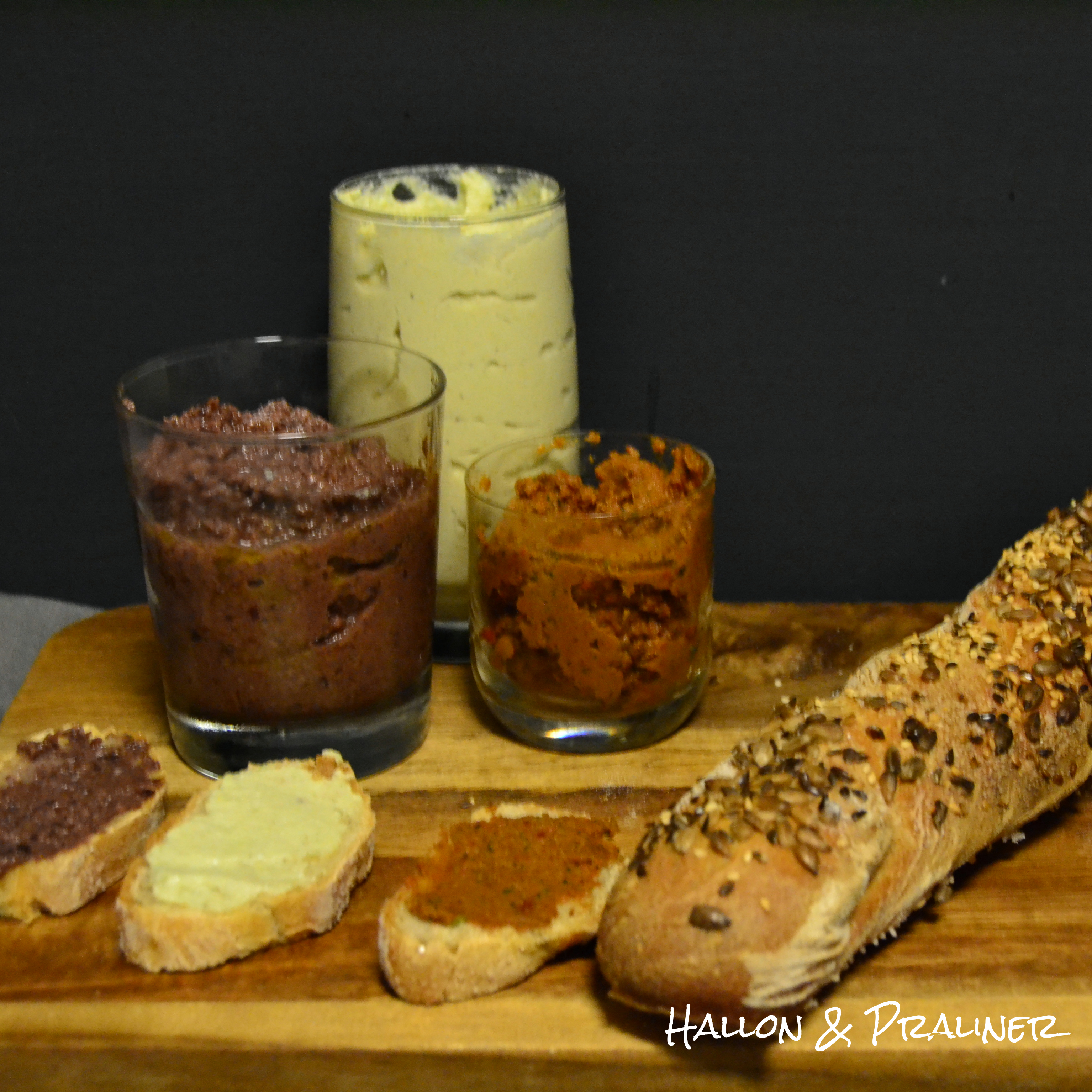 Här kommer recept på 3 olika tapenader som vi gjorde. Vi följde inget recept utan improviserade ihop tapenaderna på 3 sätt. Och de är så mycket godare än de ser ut på bilderna! 🙂