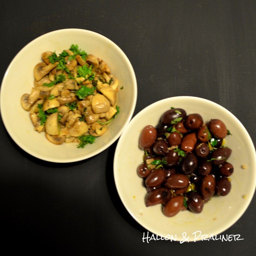 Champinjoner och oliver